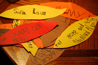 Last year we started this THANKFUL TURKEY. Each day (starting in November) the boys think of one or two things they are thankful for and we write it on a feather to help “fill” up the turkey. They have fun doing it. Our turkey this year… needs lots more feathers!