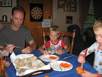 We watched The Great Pumpkin the other day too! 🙂 Cute pumpkins you all made!!