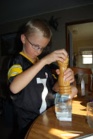 experiment that he read about in his James study. We said sure! Sounded like fun. We needed paper, a marker, tape, toothpicks, clear glass, pepper and liquid dish soap.