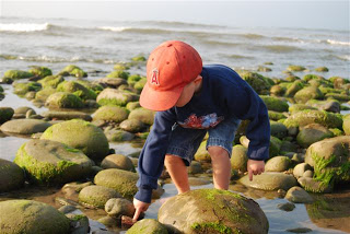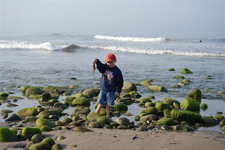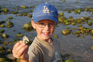 We had a nice trip to the tidepools today with our friends Laurel, Burke, Colby and Elle. We got up very early and left the house by 6:10 AM!! Had to get over there super early before it was all covered up. We saw a few neat things. The boys had got a couple books from the library on the tide pools and were looking out for all sorts of things. We didn’t find the SEASTAR that Adam was hoping for. Maybe next time! They found LOTS of little crabs! All different kinds. Next time we’ll try a better tide pool area. The boys ended up getting soaked. Silly me… didn’t bring a change of clothes either. Thanks Colby for the extra shorts for Adam!!