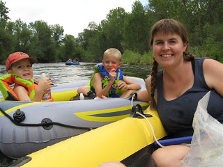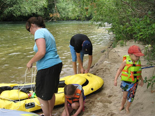 We got to go rafting down the river with our good friends! IT was such a fun experience. We even had a little adventure. We were hitting some shallow waters and Brian and my boat was loosing air! And fast! Brian was practically sinking down in the water. The boys had to duck under some branches from a tree and we eventually pulled off and blew up the raft again to float the rest of the mile. It was about a 5 mile float total.