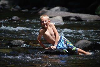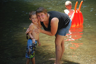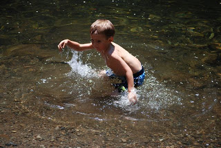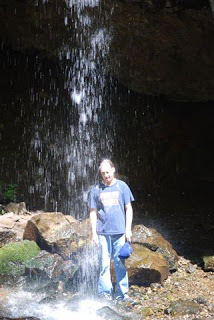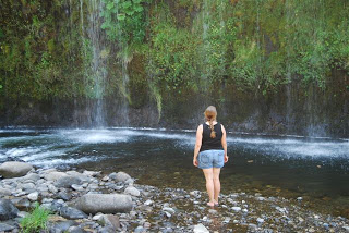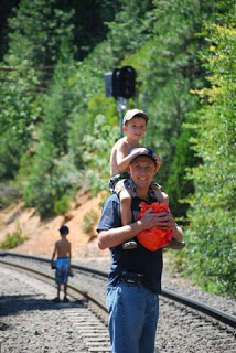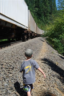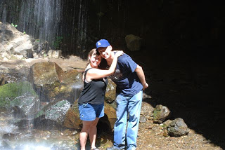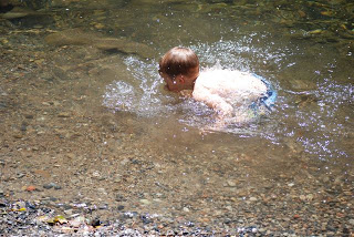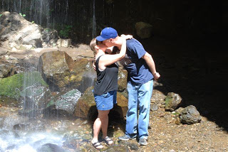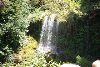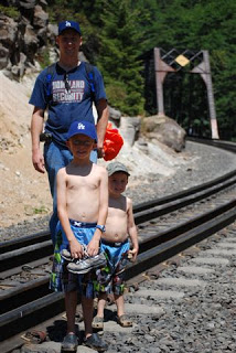 We had a neat two mile walk/hike to some water falls, right alone side a train track! We got to see a train too! It was very close and LOUD! So much fun! The boys loved it! The water was very cold. Spring swam across just to say she had been under the falls. It was neat.