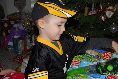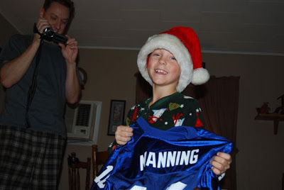 Mommy knew Gregory really wanted a Eli Manning jersey!