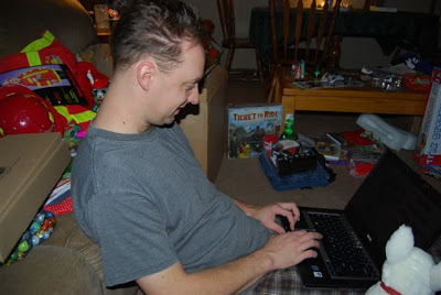Over at the Holladay’s…. Adam got a bug vacume from Uncle Levi. One of his favorites this year!
