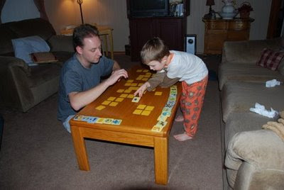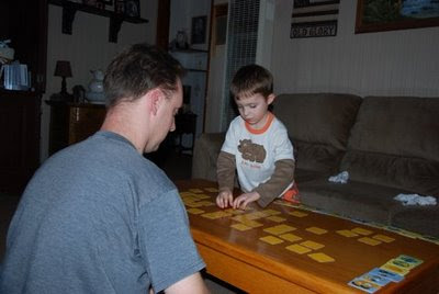 We started playing and he got the first 4 matches and ended up beating me in the end. He sure is a pretty smart little boy.