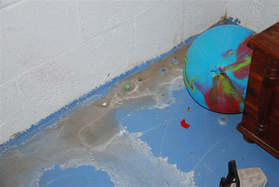 When we first moved here we didn’t ever use the basement but for storage because it was damp and gross down there. When I was pregnant with Adam we decided to “makeover” the basement, because we needed the space. We got it all fixed up to be a play room and a place to store all the toys. We sealed the walls, put drywall on the ceiling and pretty much had it a NICE place to play. For the first few months it was nice (so we thought). The past two years its mostly a toy storage place. Since it rains and ruins everything we just keep all the stuff there for the boys to go down and get what they want to play with, since it can no longer be used as a room.