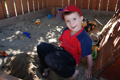 The weather is really nice today! Adam and I cleaned up all the fallen leaves and oranges in the sand box today and he’s loving playing in the sand once again!