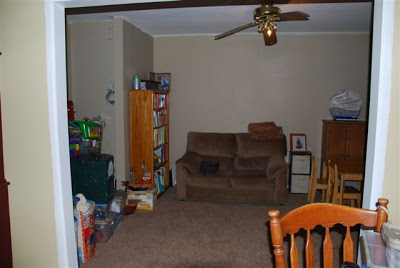 Starting to get the family room organized. This will be the room we have toys and hang out to play wii and the boys can sit at their table to draw or play or whatever. For now we have the love seat in there but are considering giving that away at some point to get more sitting for more people…