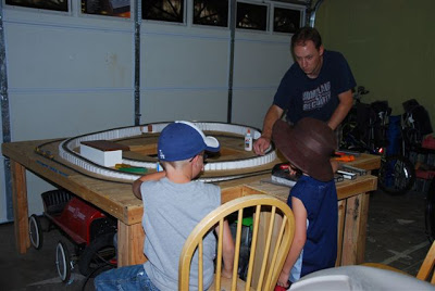 Ooo what fun, that looks like an awesome train track 🙂 I love Adam's hat too by the way, just too cute!