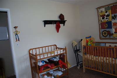 Here’s our little cowboy room so far! It’s coming a long! Thank you Annette for making the comforter be hangable 🙂