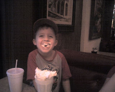 We took the boys to La Cabana tonight for dinner! One of Adam’s (and Mommy’s) favorite Mexican food place! His favorite food (well one of them) is pinto’s and cheese and cheese enchiladas and that’s what he got tonight! Yum! This is the place he picked to go for his Birthday dinner. We just did it ONE NIGHT early. Just in case little munchkin decides to show up on his birthday!