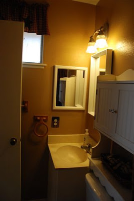 Slowly but surely we are finishing little things in our house. Finally got the med. cabinet in and I touched up paint around it today. Eventually a new sink vanity and bath tub (down the road for sure… other things come first!) But here’s our little master bathroom with a touch of country decor.
