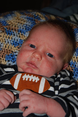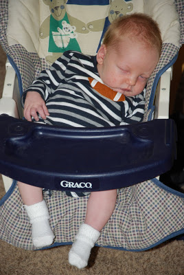 A couple people came up to me at church today and said “oh how cute, he’s gonna have red hair”. In certain light you can really see those shinny red highlights! Levi held him in church today and Levi’s hair sure brings out the red in Luke’s hair. I really am kind of hoping for him to have red/orange hair like Uncle Levi! Brian and I both have red highlights (me in my hair and Brian if he hasn’t shaved… you can see the highlights in his whiskers!) I’ll have to get some pictures of Luke outside so you all can see 🙂 Or maybe you can tell by the pictures!! 🙂 Click to enlarge.