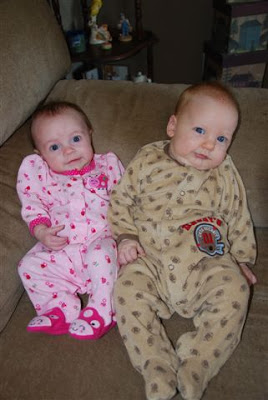 this is so funny… my mom has a picture of me with another baby the same age as me, but I am WAY bigger then her, lol! Just reminded me of that! They are both beyond adorable!!