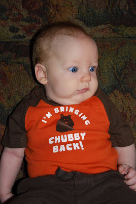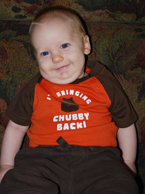 Thanks Aunt Hope for the CUTE one peice little outfit!!! He sure looks cute in it!