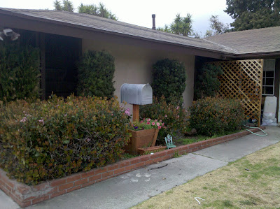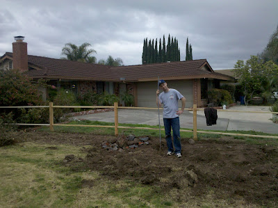 We have been staying very busy these days! Right now we are concentrating on getting our front yard fence put in. Brian has been working really hard on digging up huge rocks (picture below), brick and concrete. We got that stump of an olive tree out and will be planting a fica tree next week. He’s hoping to get the fence done within a couple weeks. One of the organic ag guys is gonna come out next week to help him dig out a few more roots, dig the hole for the tree, move a sprinkler line, and help me replant roses We are going to have all grass in the front and a tree, and maybe a few nice flower boxes. Should be great this Spring and Summer. Will be nice to have it all fenced in.The roses will get replanted in the back yard and some near the mail box planter area.