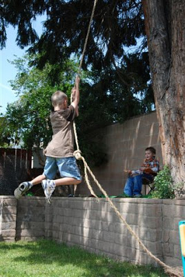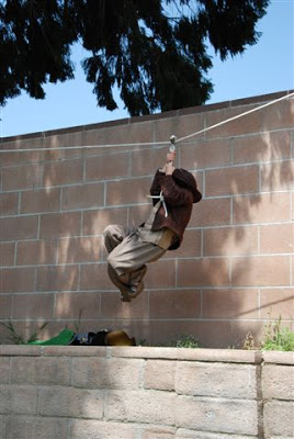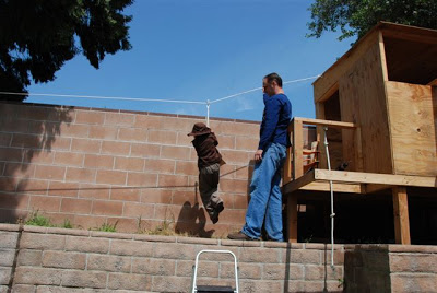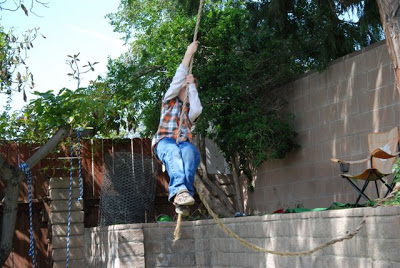 We are riggin’ up a zip line… still needs work… but Indiana Jones is loving it.
