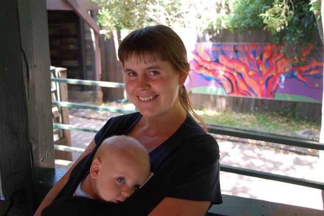 Waiting in line for the train ride. Luke napped in the Ktan.