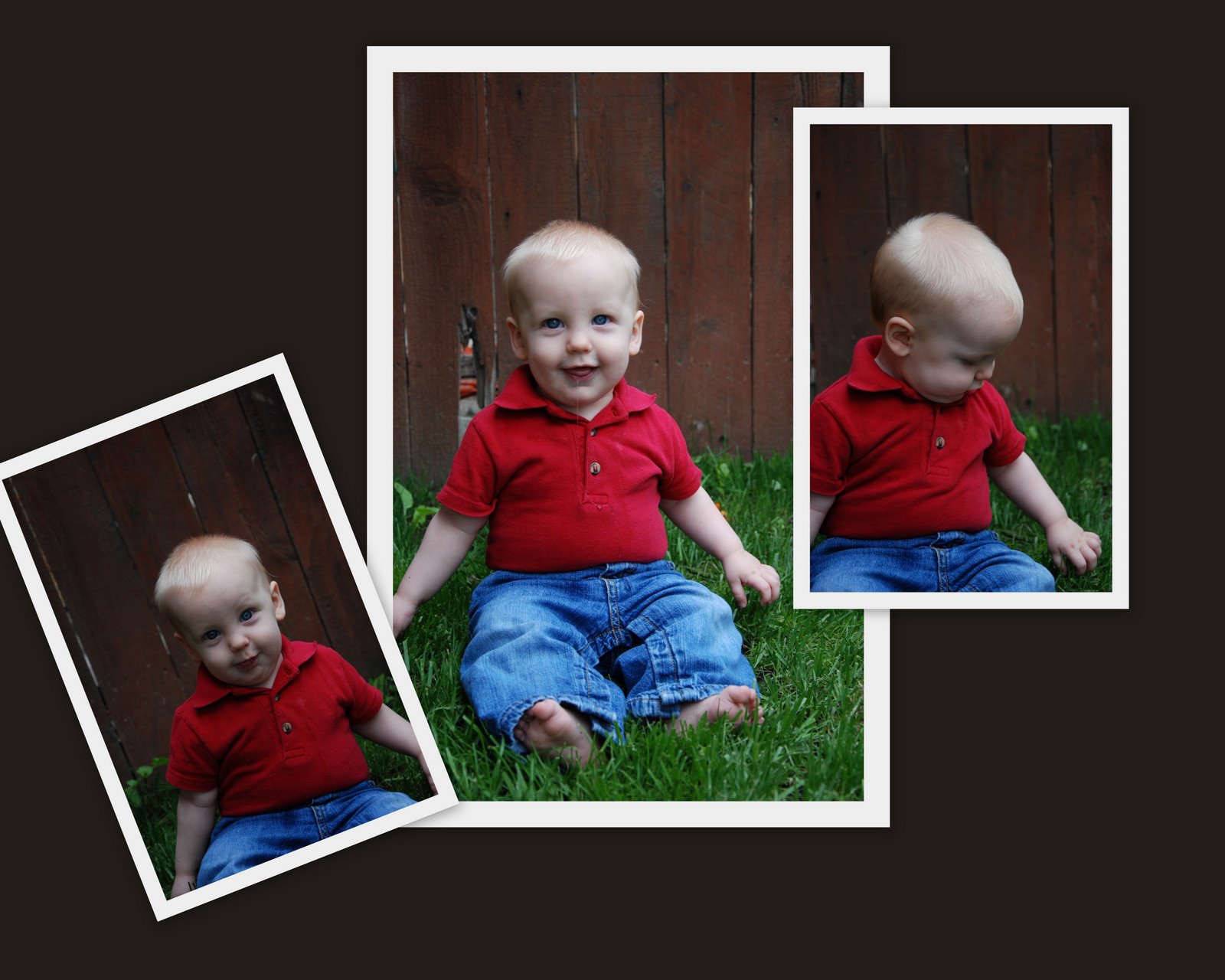 I had pictures done of the other boys in jeans and this red outfit at six months, so I did for Luke as well, but just decided to take them myself in our yard. Although these are different jeans since Luke can’t fit in those! He’s getting so big and is sitting up more and more these days with less help.