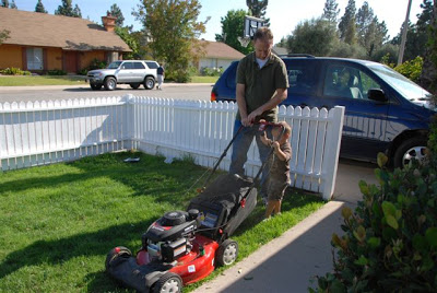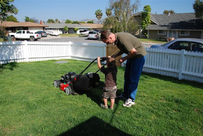 John David is very much obsessed with lawn tools, blowers, weed eaters etc… So he had to help Brian mow the lawn. It was very cute!