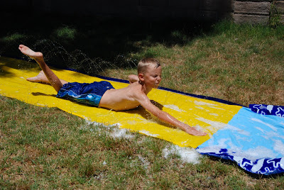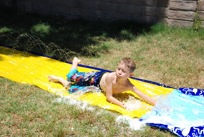Pulled out the little pool and slip n slide! Luke LOVED LOVED LOVED playing in the water and the bottom wasn’t too slippery so he could crawl and splash and have so much fun with his brothers! We for sure lathered his WHITE little body with sunblock!