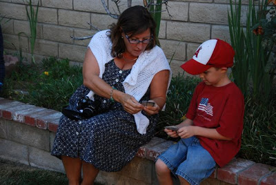Adam was proud to share Aunt Freida his baseball cards.