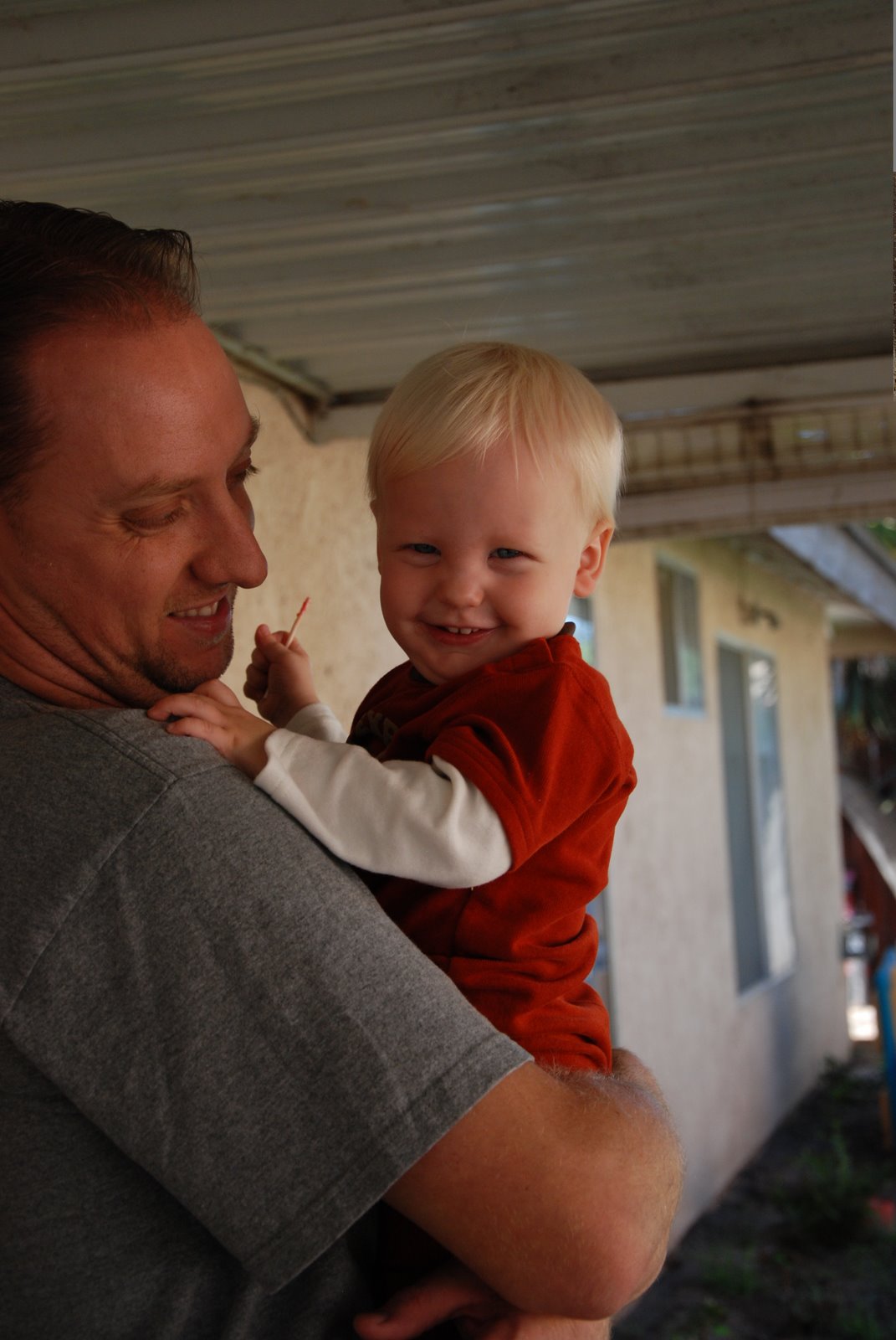 Cute and sad all at the same time! Right when we say “Daddy’s gonna go bye bye” (normally at lunch)… Luke immediately gets up in Brian’s arms and snuggles and thinks by doing this that Daddy isn’t gonna go anywhere!