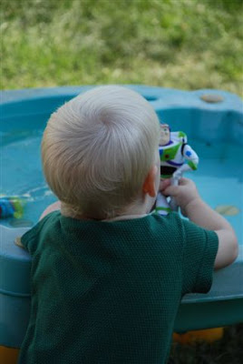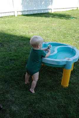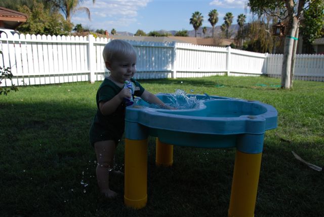 Since Luke is so intrigued with the toilet, we figured it would be better to fill up our water table and let him splash in that instead!