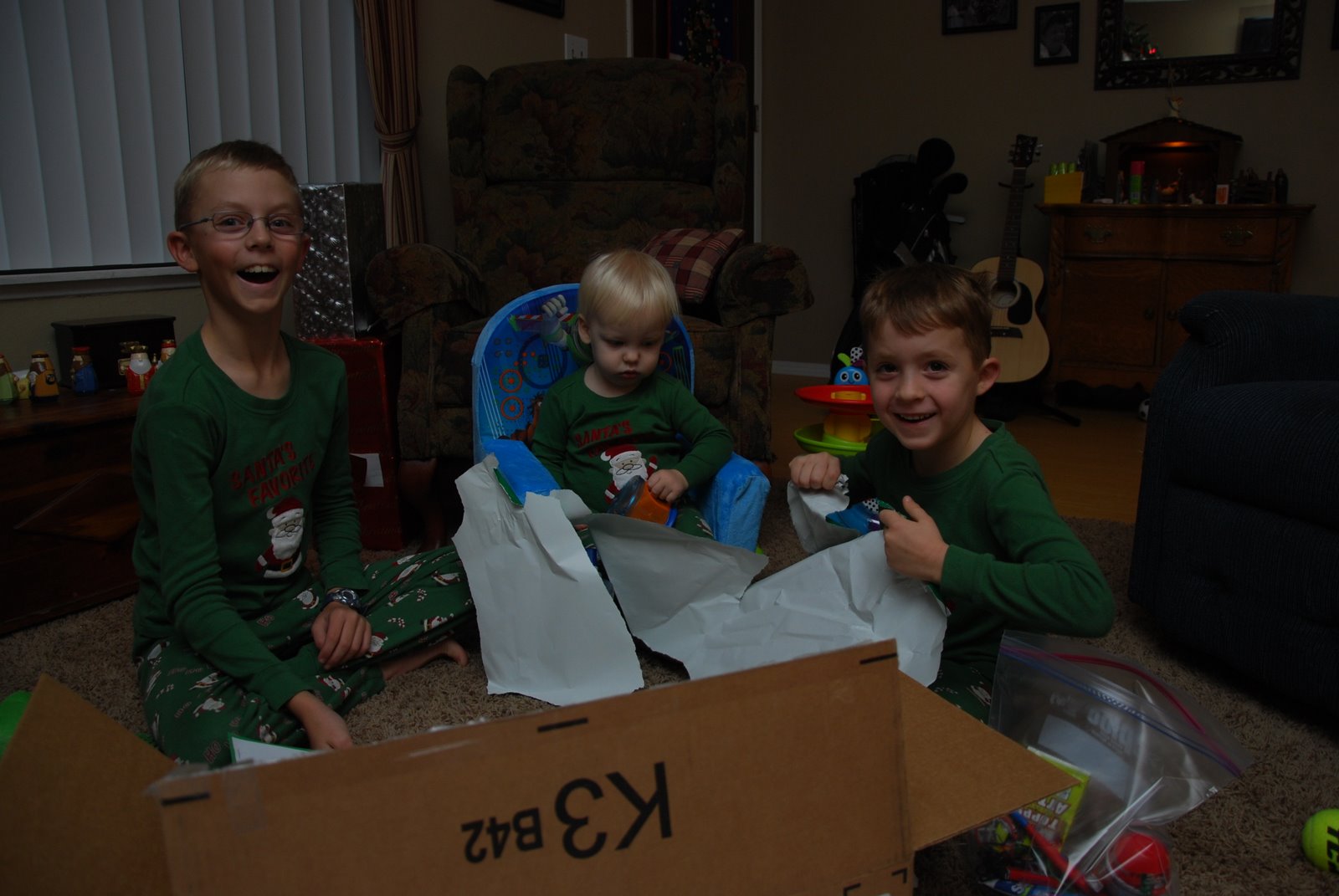 Luke in his chair from Santa. He was more interested in the candy inside the santa head though!
