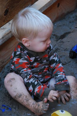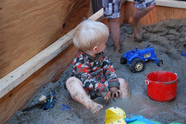 The rain really messed up the sand box! We forgot to put a tarp over the wood so it wouldn’t get all muddy! Adam and Luke sure had a blast in the mud, now Brian has to figure how to fix the problem and dry it out!