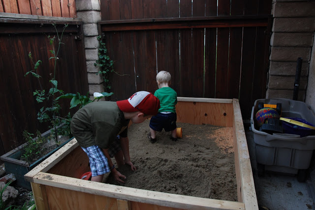 Brian built a 4 by 6 sand box for the boys. They have been enjoying it so much! We put boards to cover for now until he makes a cover. Don’t want the stray cats using it at as a box!