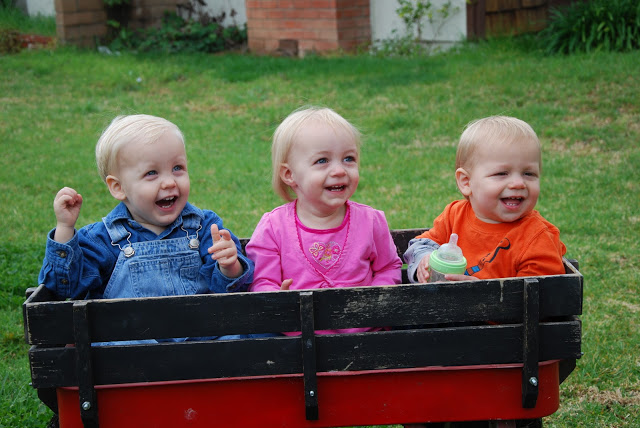 | Grace is the oldest (17 months) , then comes Luke Samuel (16 1/2 months) and then Matthew (14 months) |