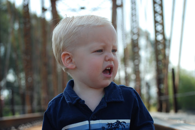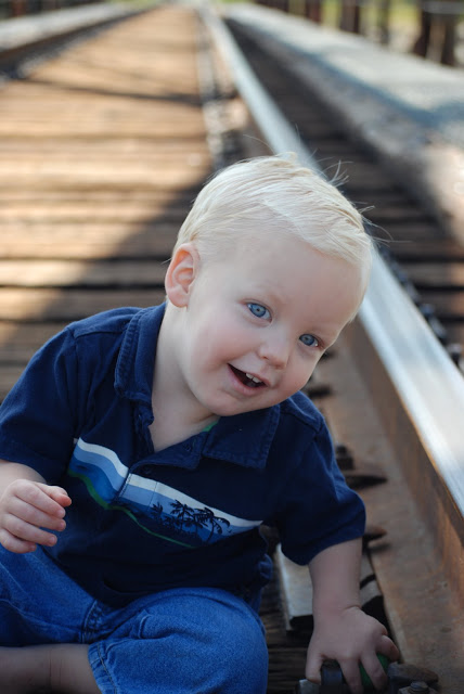 He’s such a sweet boy and so happy and funny! He’s 97 percentile in Height and Head circumference. He’s 50 percentile in Weight, weighing in at almost 26 lbs. We went up the railroad tracks and river today to get some 18 month shots, and give me a chance to play with my camera. It was a lovely day and so nice there. The one where he’s smiling is when I did a mean trick and said “where is daddy?” He looked up and was laughing. Didn’t last when he knew I was lying!