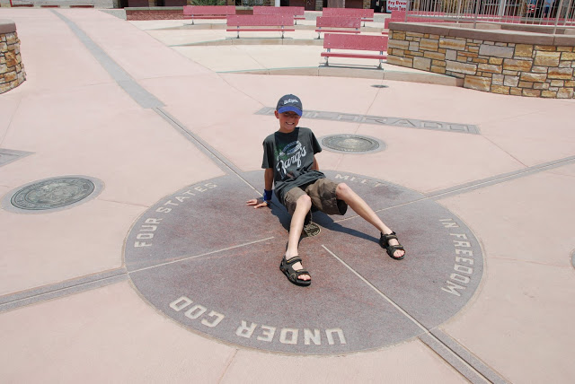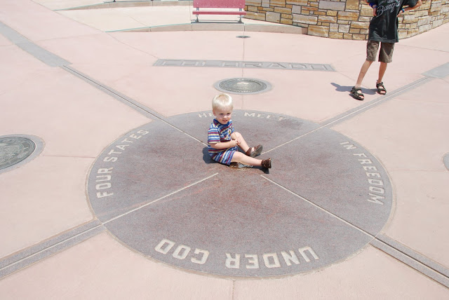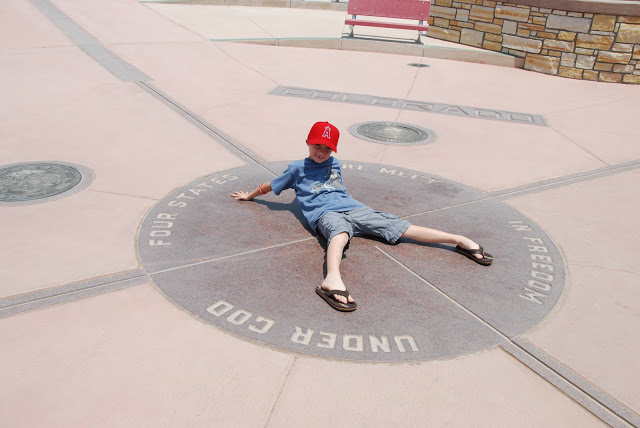 It was neat and the boys thought it was cool to stand in FOUR states at one time! We had to pay $3 (PER PERSON) to get in. Then we all had to use the restroom. All they had was jiffy johnny’s! You’d think they could afford to put in a REAL bathroom! GROSS! I had to wait til we got to a town to go. that was a bit painful! Especially with little acrobat inside, jumping on my bladder! Can’t stand using those things! It was sort of smelly and gross here too. But we had to stop just to say we’d been there!