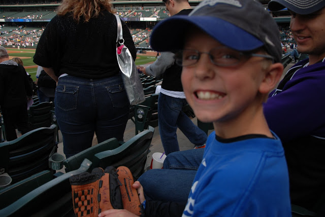 He ended up with autographs from Matt Kemp, James Loney, Jamey Carroll and Andre Ethier.  We are going to have to frame his glove now.