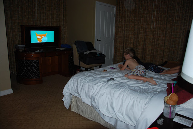 We did have to walk thru the casino to get to the rain Forrest cafe. We are not fans of all the smoke. Adam was covering his face with his shirt and complaining about all the smoke. The Rain Forrest Cafe was pretty neat though. They had a pretend thunder storm every 10 mins, which was really neat. Luke loved when all the animals moved too.