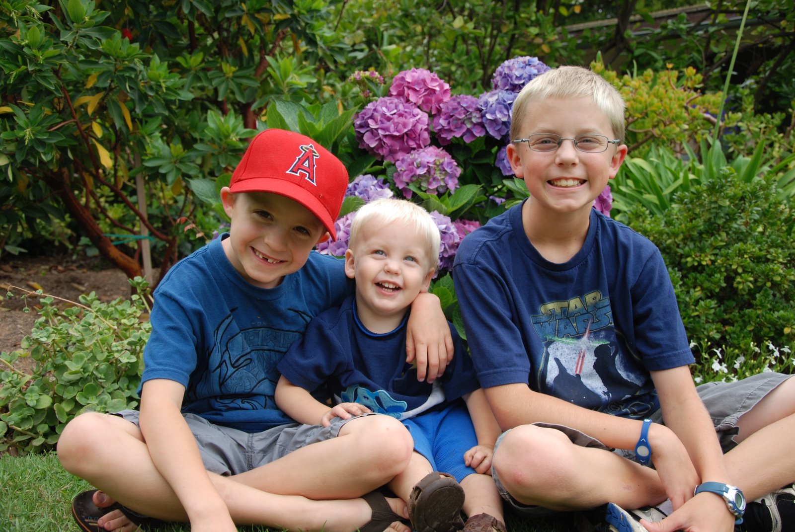 We had a nice visit with Brian’s Grandmother (Gran) in Santa Barbara before we headed to the zoo. Here back yard is beautiful with the trees and flowers. The boys loved running around and posed for a quick couple of pictures!