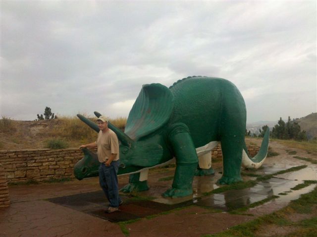 They stopped on their way back home (SD) to get a couple shots with these dinos for LUKE! Luke Samuel LOVES dinosaurs and is pretty obsessed with them these days! I think it was raining and Faith got out anyway just to get these! Faith, Luke thinks you are being attacked and so he keeps growling and can’t let the picture down.  Thanks for texting these (I printed them for Luke).