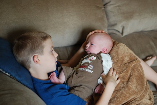 The only “sign” of Jealousy I saw was when Pop (my dad) was holding Gideon the other day and Luke really did NOT want Pop to be holding Gideon. Not sure why? But he was pretty upset about it. I’m doing well. I’m still pretty tired most days. I’ve been told (by a few people) I’m doing too much and should take it easy. I made dinner for the first time tonight since having Gideon. It was a big dinner too, I was pretty much done after that! Its just a lot to learn to juggle two so close together, with fully nursing and with Gideon who loves to be held, and my house… which I love to try to keep clean. I do LOVE my four boys, I’m just trying to learn how to work it all out and make things “run” smoothly in our family. I’ve got to learn to say “no” even to good things and learn to not expect so much out of myself too.