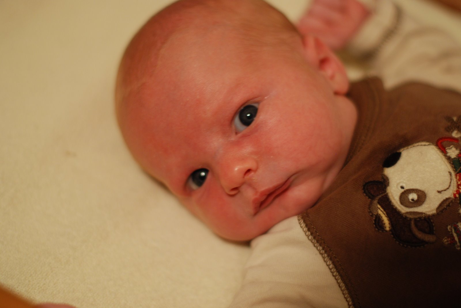 Gideon is getting to be a lot more alert and wide eyed! He does give us lots of smiles at times too, which is so cool. He’s very much a “Mommy’s boy” at this time and wants me to hold him when he’s awake. Not much for being put down when he’s awake, at least not for a long period of time.
