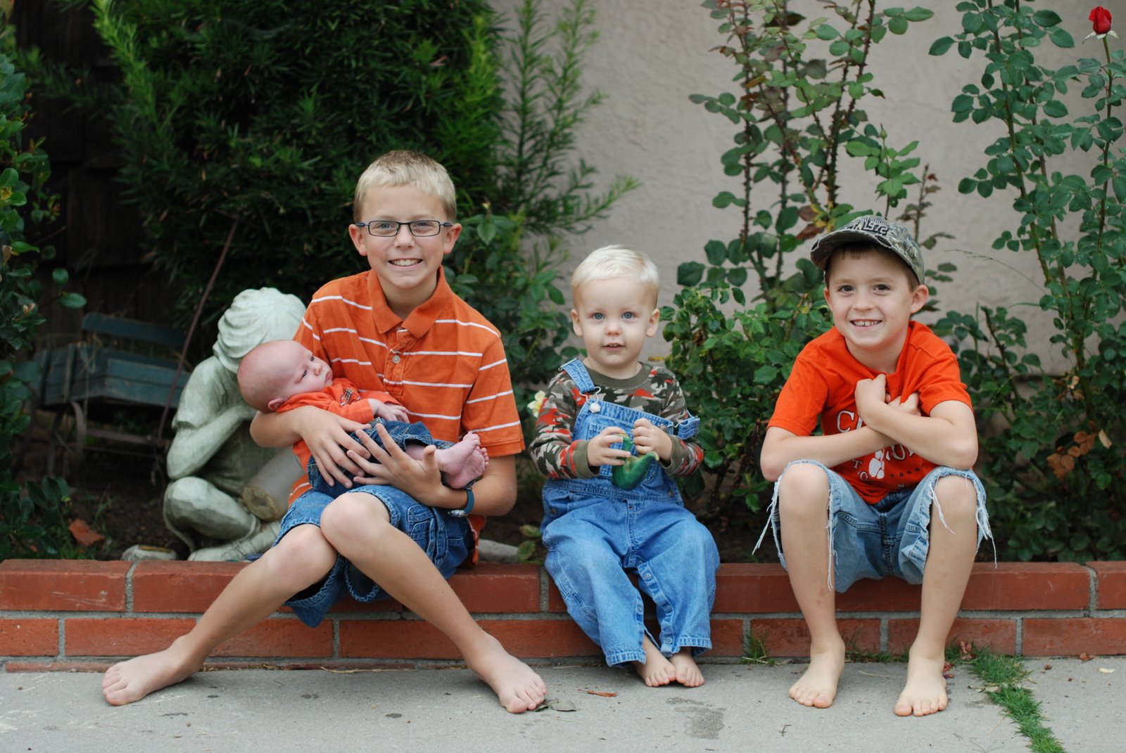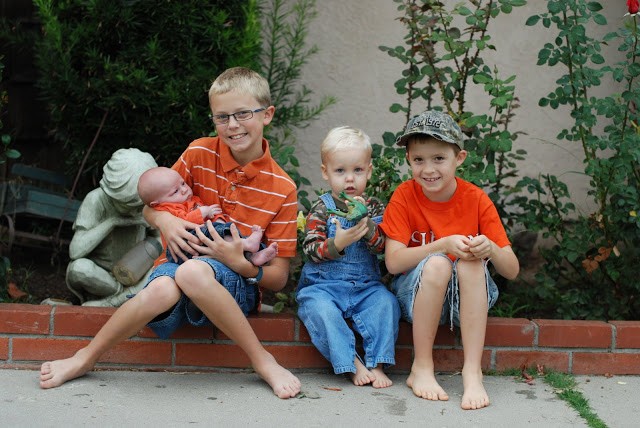 Its a cloudy morning and Gideon seems MOST happy in the morning so I wanted to get a shot of all FOUR boys.  We haven’t gotten any cute ones since Gideon was born.  He’s my QUICK morning attempt.