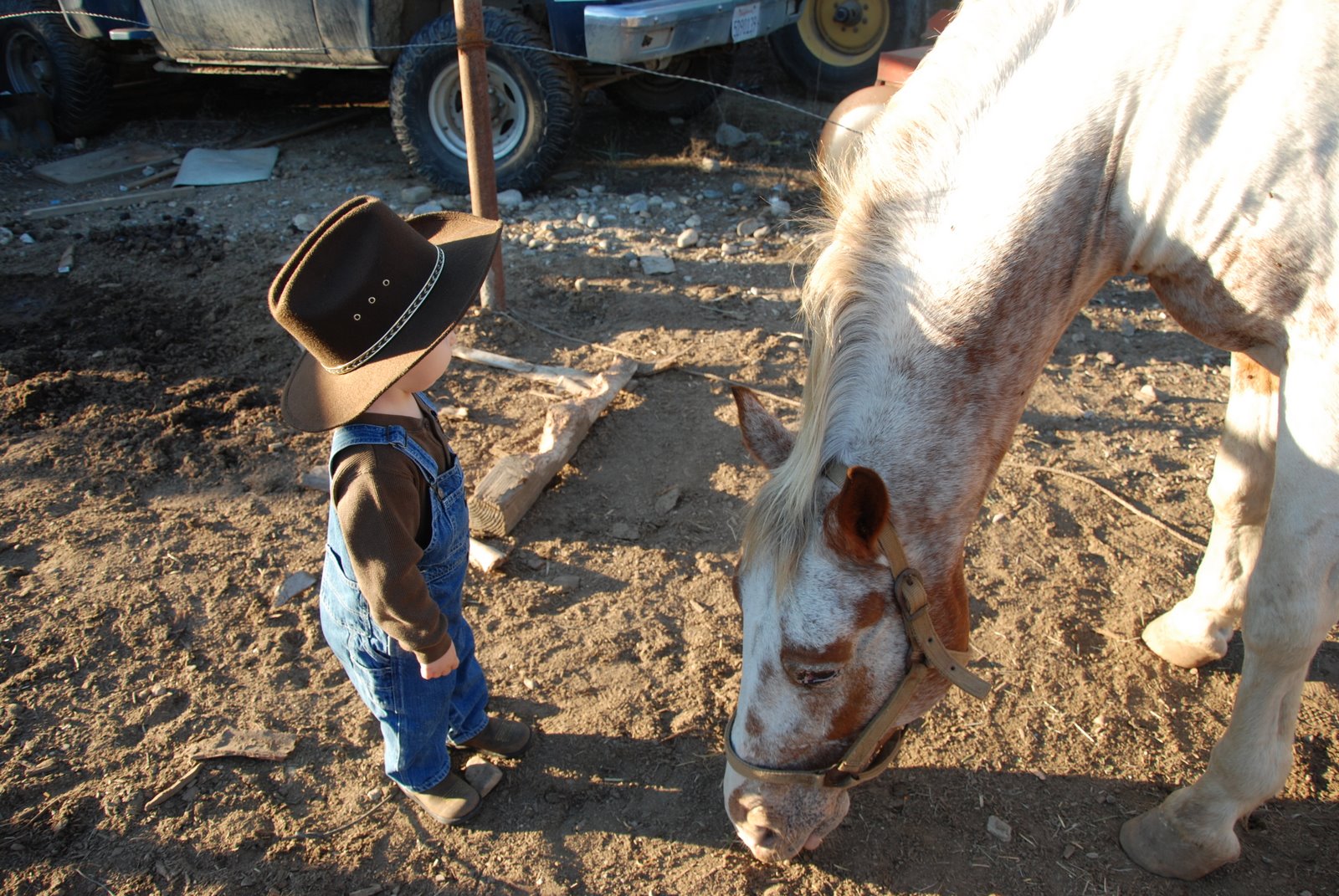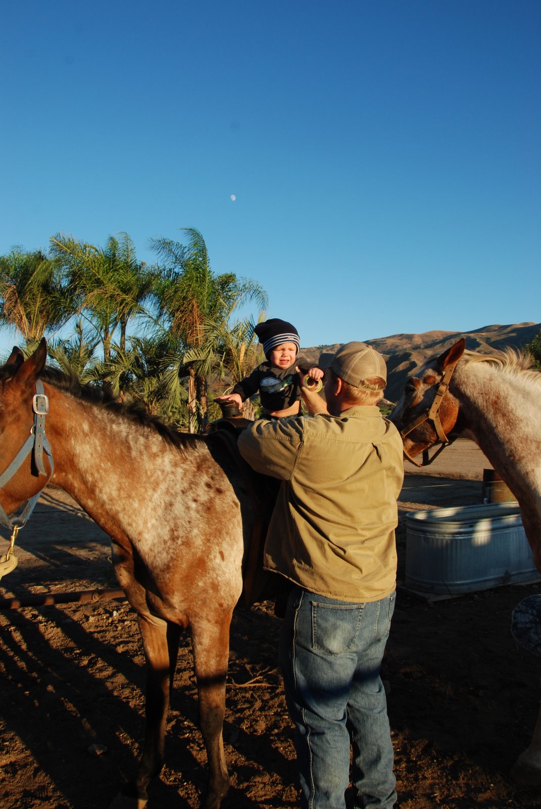 Levi was “horse sitting” so the kids got to go on little horse rides.  The babies didn’t care very much to sit on them.  Luke LOVED to be near them and pet them though.