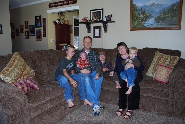 | It was tough to get the camera back far enough to get the whole couch in! LOL. The two end seats recline which is super neat 🙂 Our coffee table doesn’t go well in the living room anymore, we will have to look for something smaller if we go with something at all. Four big pillows came with the couch, I don’t care for the fabric and Donna might be able to make us covers for them as soon as I get a chance to find fabric that I like. |