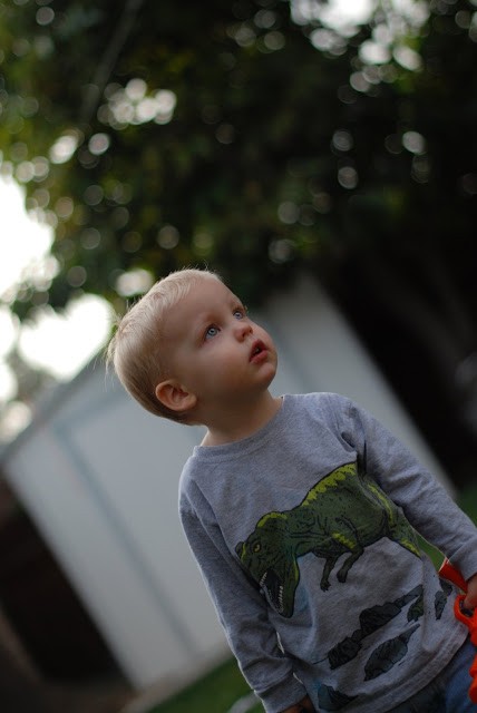 We spent the afternoon looking hunting down dinosaurs in our back yard! Luke Samuel has the most hilarious facial expressions I have ever seen and he can make his eyes huge sometimes. Its so cute! Adam joined in the fun and it turned into playing cowboys.