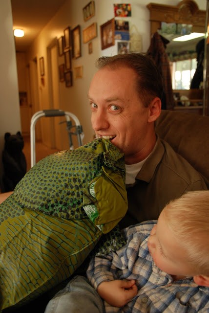 Luke got this HUGE blow up T-Rex. Its taller than he is. I think this and the Dino Hope got him has to be a favorite for him this year!