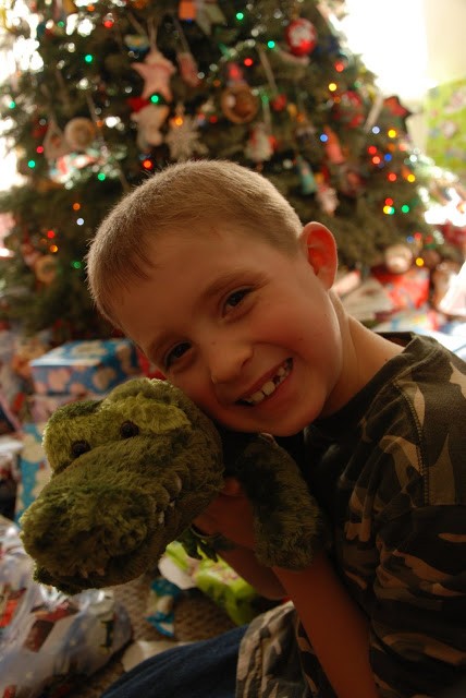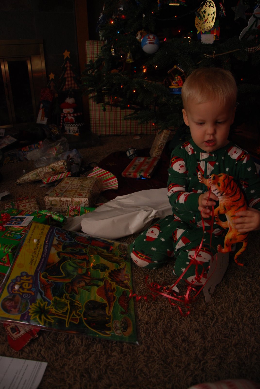 ooops another from Christmas morning. He really liked this tiger that Adam got him.