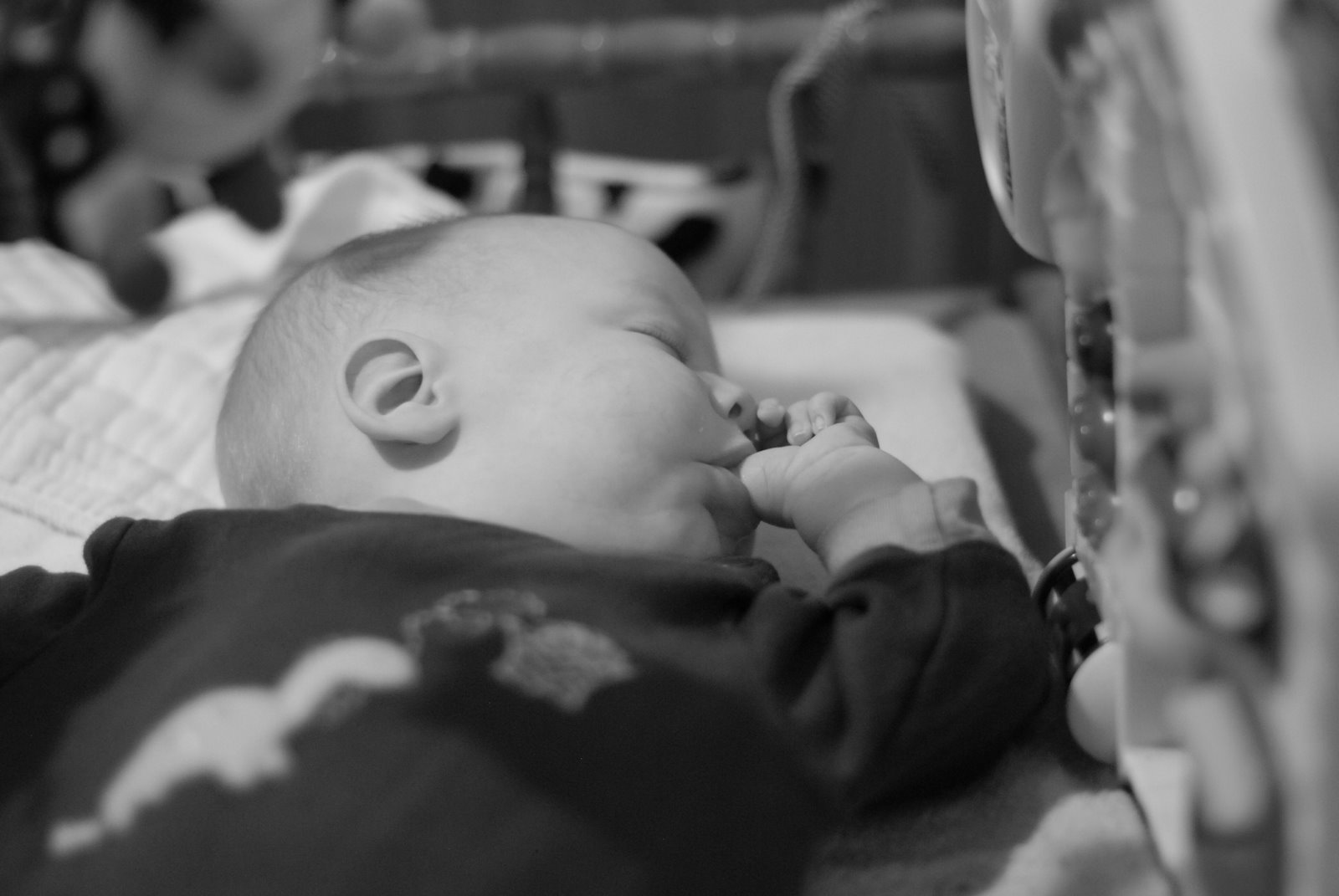 He has just recently started sucking his LEFT thumb. We aren’t sure if he is really taking to it or its just random.. Past few weeks we have found him sleeping with it in and sometimes in the bouncer he sucks his thumb, then we found you on the changing table sucking away just yesterday. It is sooo adorable!