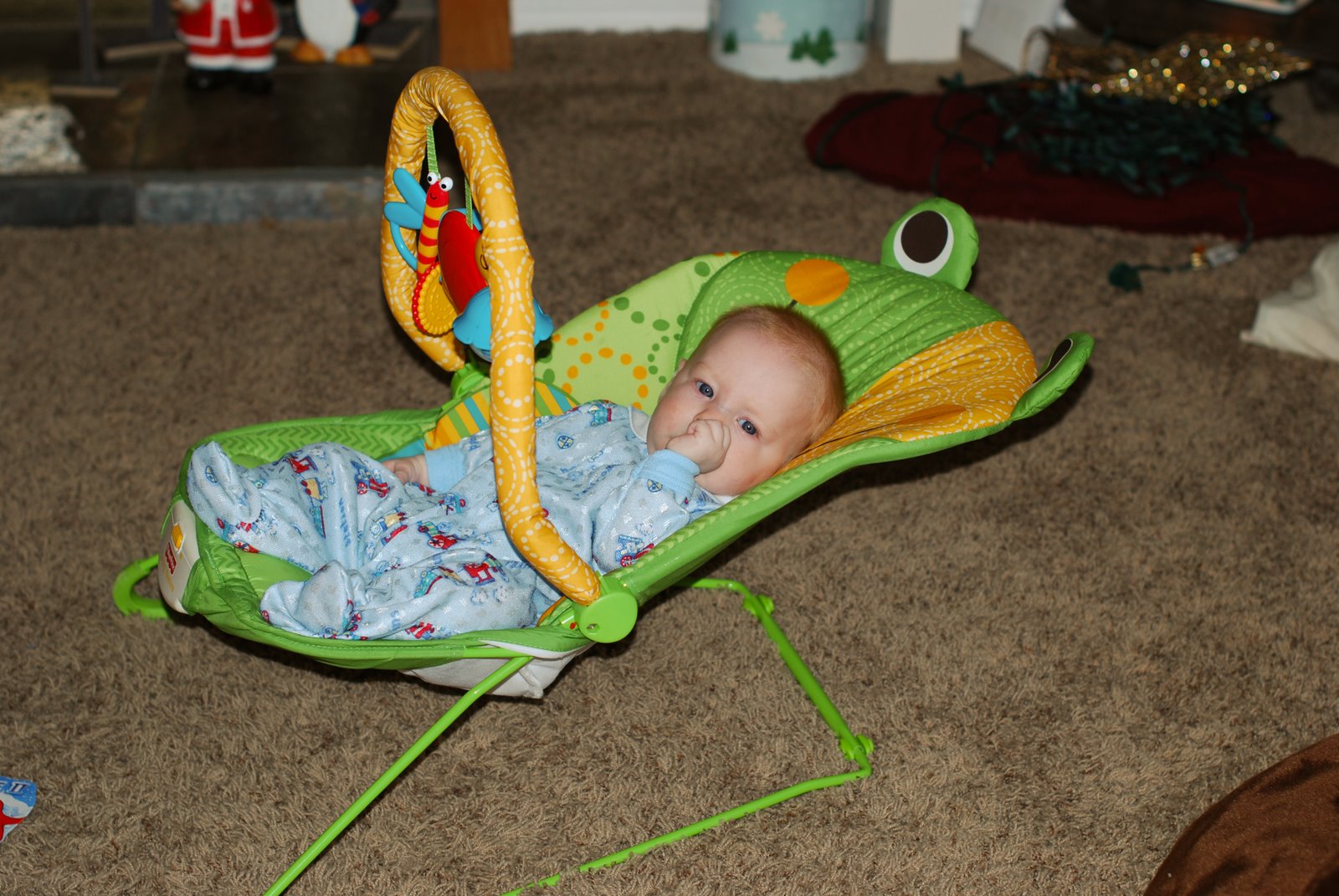 Gideon has changed so much this month. The first month and a half you pretty much wanted me to hold you 24/7. You still love to be held, but at least you love your bouncer, baby songs, and your swing some too! You pretty much wake ONCE at night (have for a long time now), but sometimes its in the wee early morning like 4:30 or 5:00 and if its that time I just plop you in our bed and nurse you there and you fall back to sleep with us ! We love our snuggly time with you! If its earlier then I rock you in the living room. If you happen to be wide awake you like to go in your swing and will often times fall back to sleep there for the rest of the morning.