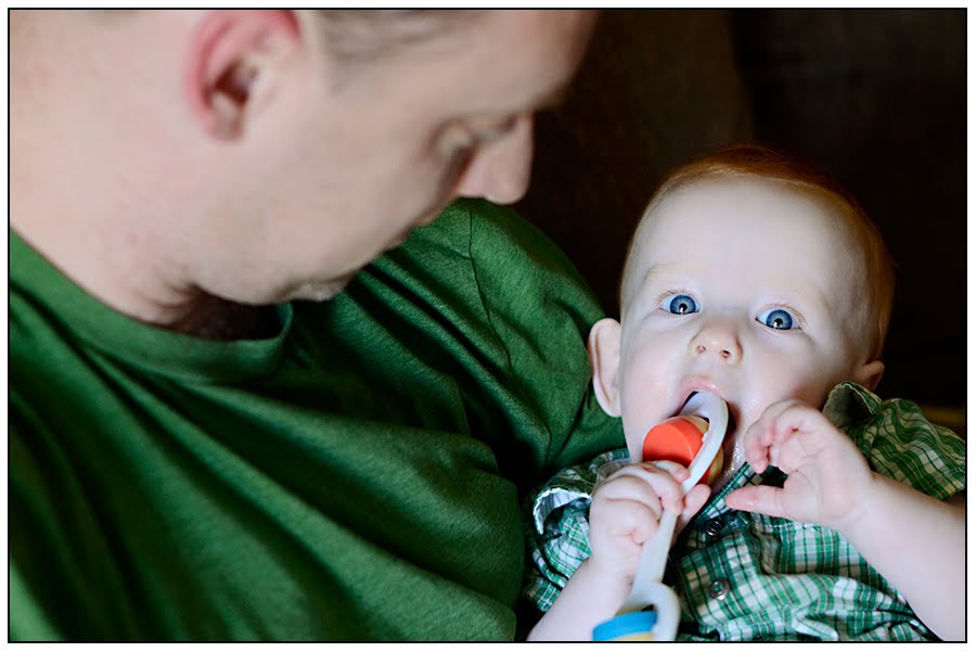 My oh my these 7 months have just gone in a FLASH! Here is our sweet boy yesterday on his 7 month day.  All slicked up still from church.  You still nap on mommy during the worship service and often times we will have to make our way to the back because you like to “talk” a little too loud and Mommy has to go in the back to feed you.  Yesterday Hope said she could hear you in the back talking! You are loud! We don’t have a baby room at our church so we just step in the back outside the doors.  They aren’t baby sound proof walls.