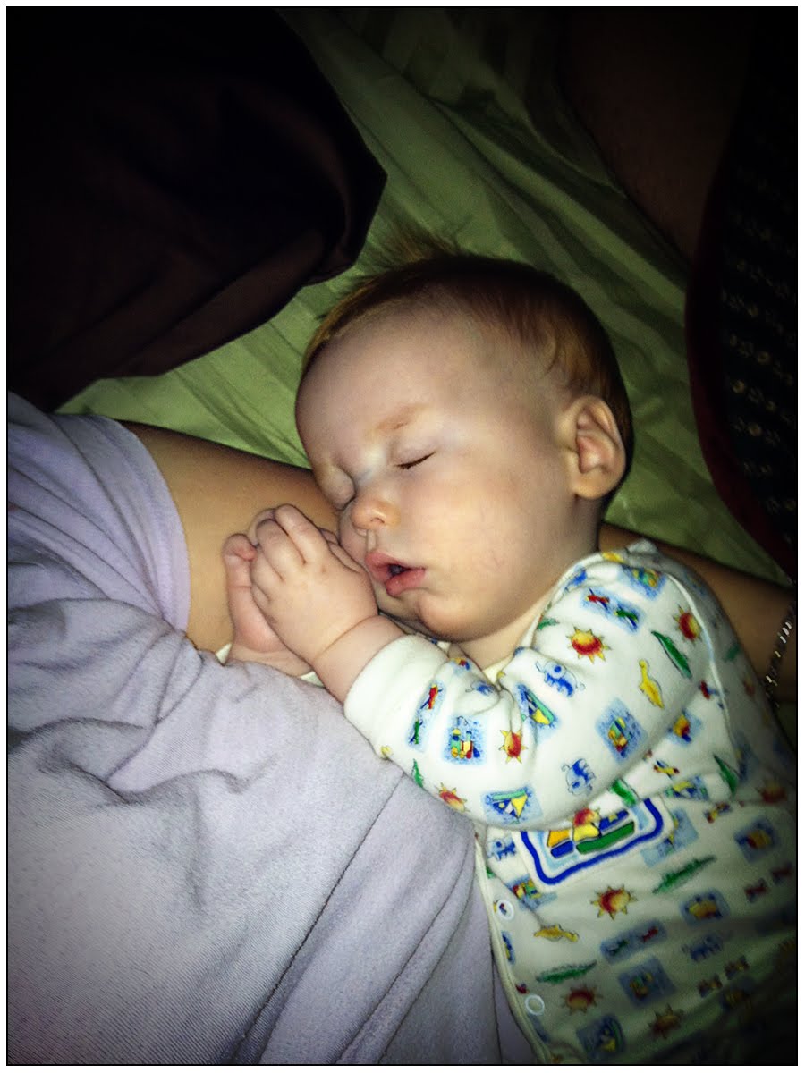 This is how he looks when he snuggles in our bed.  Often times he’ll drift back to sleep after eating.  Soooo sweet.  I happened to have my phone next to me so I was able to snap this on his 7 month day.  I do cherish these times.  They do go so fast.